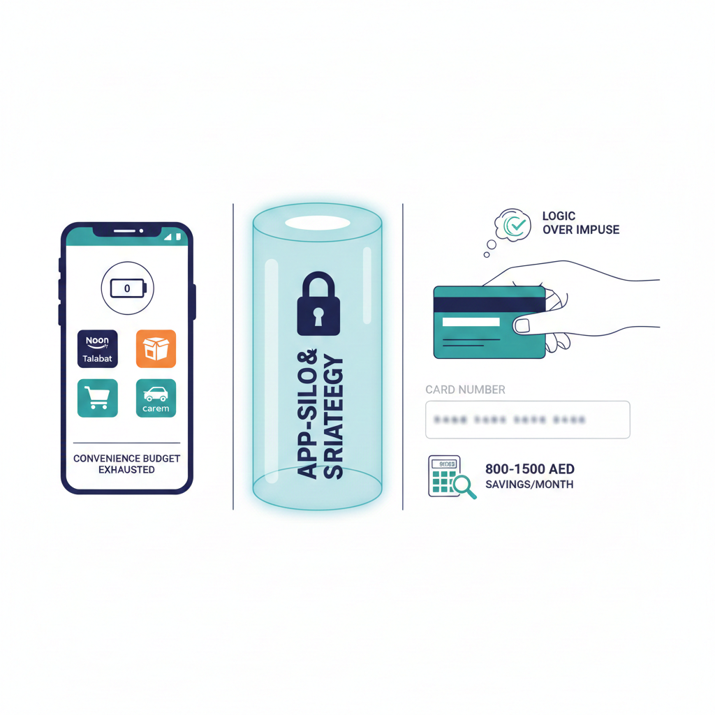 - The Finfigs Solution: The “App-Silo” & Friction Strategy To stop the leak, you must stop the automation of your impulses. Finfigs recommends a two-tier approach. First, move all your “Convenience Apps” (Talabat, Noon, Careem, Amazon) to a single, dedicated digital prepaid card (like a secondary bank account or a digital wallet). Load this card with a fixed “Convenience Budget” at the start of the month. Once that card hits zero, the apps stay closed. Second, remove all saved credit card details from these apps. By forcing yourself to manually type in your card number for every AED 5 delivery fee, you introduce “Cognitive Friction.” This 30-second delay allows your logical brain to override the impulse, often saving residents between AED 800 and AED 1,500 monthly.