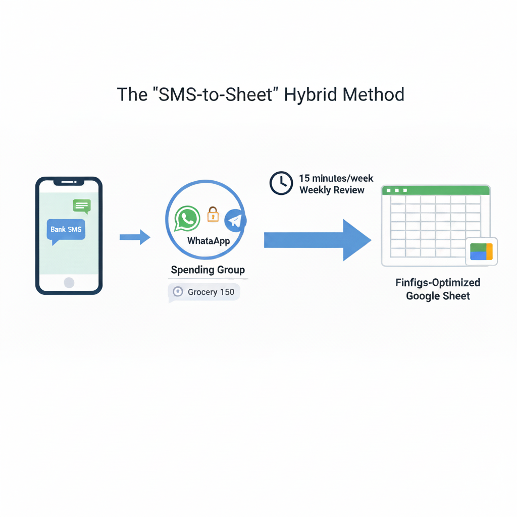 The Finfigs Solution: The “SMS-to-Sheet” Hybrid Method Finfigs advocates for a “Privacy-First” automation loop. Since almost every transaction in the UAE triggers an immediate Bank SMS, use these as your data source. Create a dedicated “Spending Group” on WhatsApp or Telegram containing only you (and your spouse, if applicable). Every time a bank SMS arrives, forward it to this group or type a quick keyword (e.g., “Grocery 150”). At the end of each week, spend 15 minutes transferring these logs into a finfigs-optimized Google Sheet. This method offers the speed of digital tracking with the security of an offline system. It also forces a “Weekly Review”—a ritual where you confront your spending while the memory of the purchase is still fresh, which is the most effective way to change long-term financial behavior.